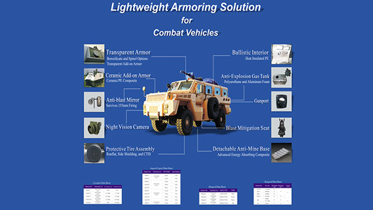 用于軍用、警用,工程及民用等各種車輛的防護,應對襲擊事件和其他群體性攻擊破壞,可抵抗棍棒,磚石,尖鎬等破壞工具的較長時間攻擊,子彈射擊甚至可抵擋低當量爆炸物產生的沖擊波和碎片。